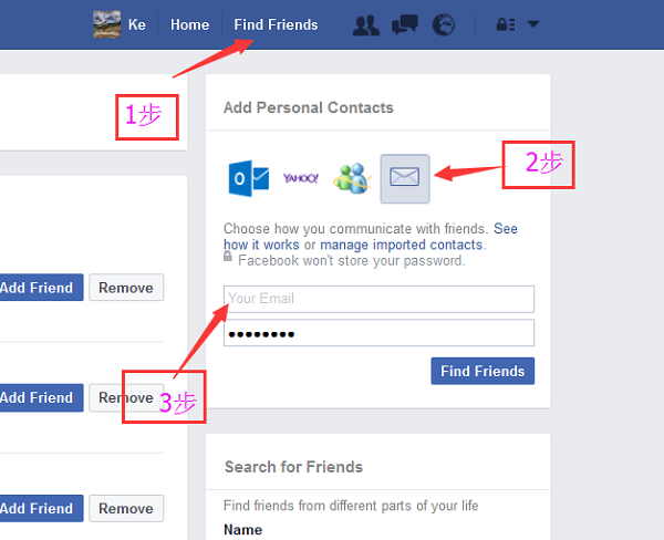 6、往facebook导入邮箱联系人