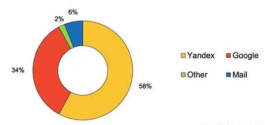 在俄罗斯,有89%的用户会使用Yandex的服务。仅搜索引擎服务就占据58%的市场份额,超过谷歌的34%。