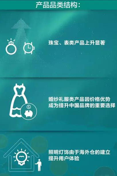消费电子、手机及附件、珠宝、服饰鞋帽、运动与户外产品持续增长。除了消费电子、手机及附件这些持续高增长的品类以外,时尚类的珠宝、服饰鞋帽的高涨幅也很值得关注。